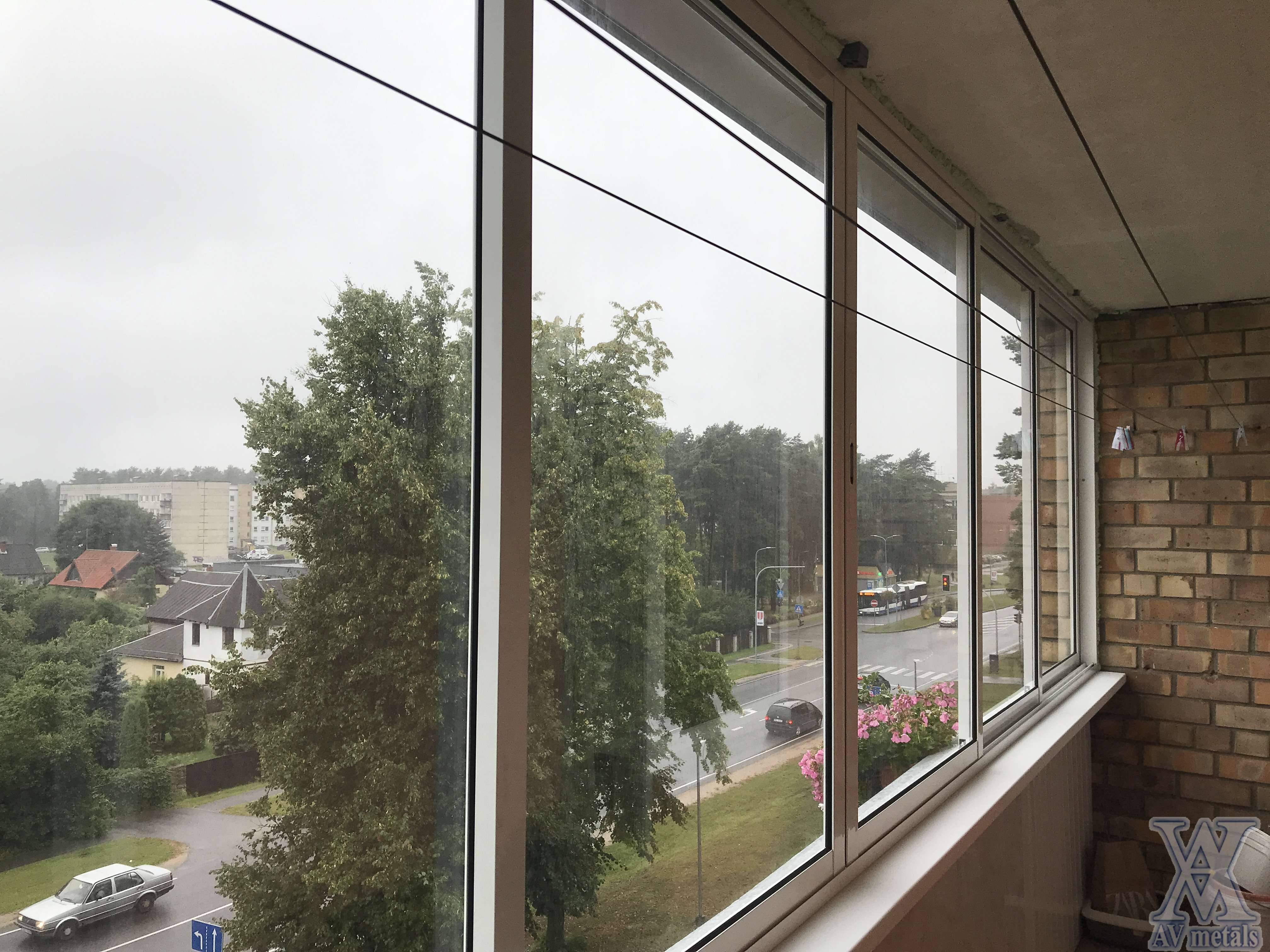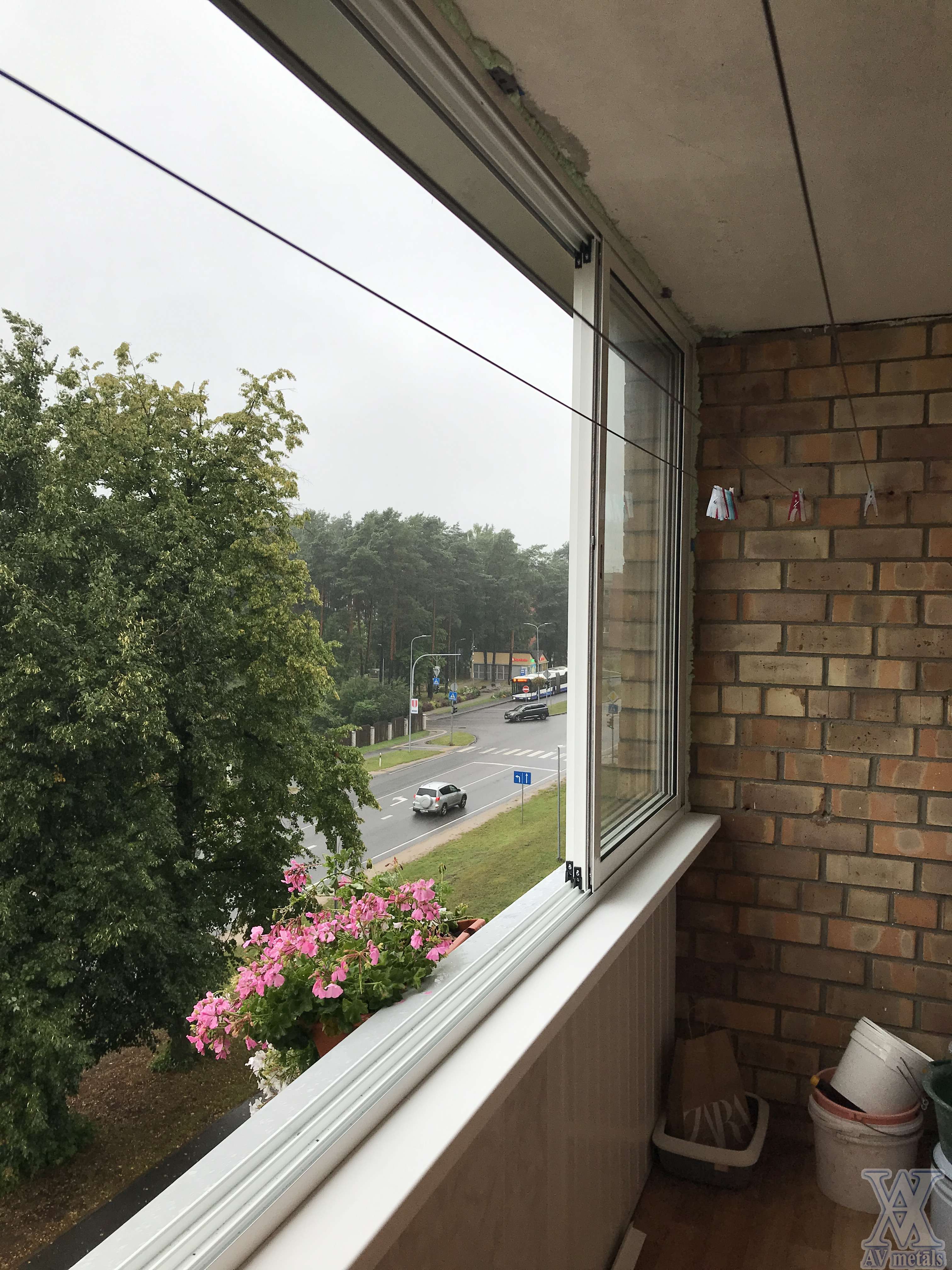 Alumīnija bīdāmā sistēma uz 3 vadotnēm, 6 logi, var atvert 70% (6m garai lodžijai)